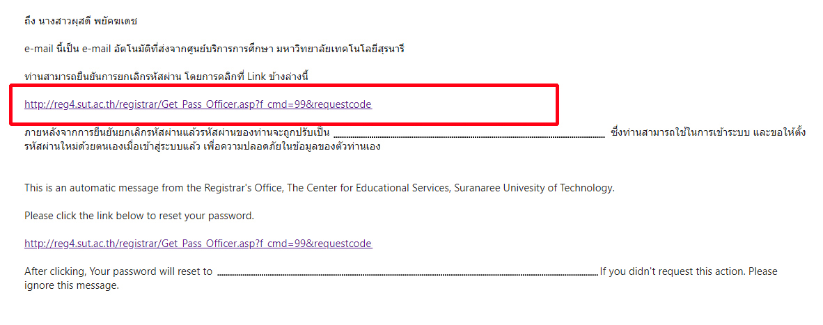 จะไม่สามารถทำการ Reset Password ได้ด้วยตนเอง ***