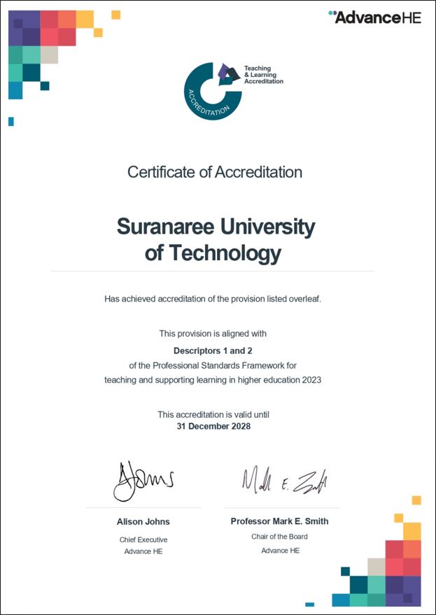 มหาวิทยาลัยเทคโนโลยีสุรนารี เป็นมหาวิทยาลัยเฉพาะทางด้านวิทยาศาสตร์ วิศวกรรมศาสตร์และเทคโนโลยี ในมิติของการพัฒนาความเป็นเลิศมหาวิทยาลัยให้ความสำคัญยิ่งต่อการพัฒนาองค์ความรู้และสมรรถนะบุคลากรทางการศึกษา ให้สอดรับตามมาตรฐานทางวิชาชีพ จากการริเริ่มการพัฒนามิติการศึกษาและการจัดการเรียนการสอน จากดำริของ ศาสตราจารย์ ดร.วิจิตร ศรีสอ้าน (PFHEA) อดีตอธิการบดีผู้ก่อตั้งมหาวิทยาลัย (ด้วยความรำลึก) ได้เล็งเห็นถึง ความเป็นมาตรฐานด้านวิชาชีพการสอน และความเป็นไปตามครรลองของความเป็นคณาจารย์ผู้มีจิตวิญญาณความเป็นครู จึงริ่เริมความร่วมมือกับ สถาบัน Advance HE ของสหราชอาณาจักร ในการเสริมสร้างรากฐานความเป็นผู้รู้ผู้เชี่ยวชาญด้านการสอนในระดับอุดมศึกษาให้แก่คณาจารย์อย่างต่อเนื่อง