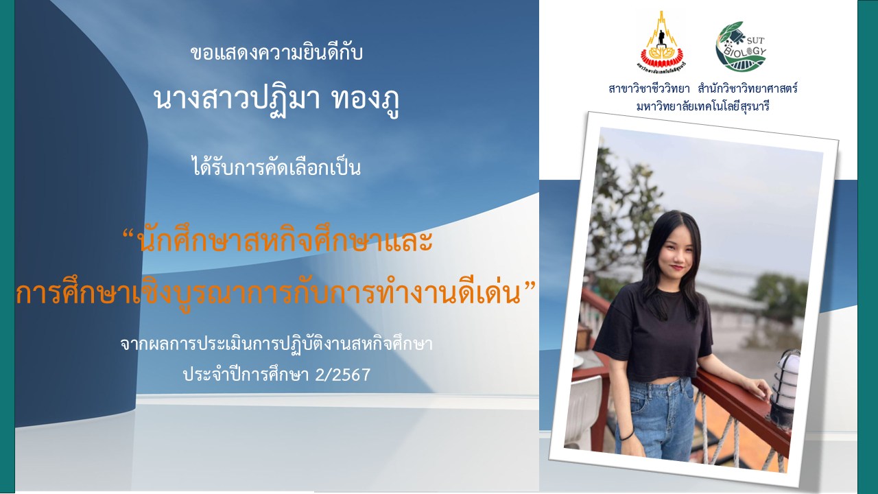 สาขาวิชาชีววิทยาขอแสดงความยินดีกับ นางสาวปฏิมา ทองภู ที่ได้รับคัดเลือกเป็น นักศึกษาสหกิจศึกษาและการศึกษาเชิงบูรณาการกับการทำงานดีเด่น จากการประเมินการปฏิบัติงานสหกิจศึกษา ประจำภาคการศึกษาที่ 2/2567 01 ธันวาคม 202501 ธันวาคม 2025sukanyamข่าวสาร ผลงาน/รางวัลFacebook iconFacebookTwitter iconTwitterLINE iconLine