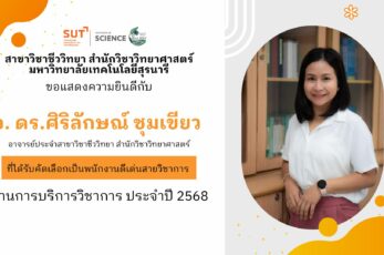 สาขาวิชาชีววิทยา สำนักวิชาวิทยาศาสตร์ ขอแสดงความยินดีกับ อ. ดร.ศิริลักษณ์ ชุมเขียวที่ได้รับการรับรองสมรรถนะวิชาชีพอาจารย์ ตามกรอบมาตรฐานของสหราชอาณาจักร (UKPSF) ระดับ Fellowข่าวสารผลงาน/รางวัล 01 ธันวาคม 202501 ธันวาคม 2025sukanyamข่าวสาร ผลงาน/รางวัล